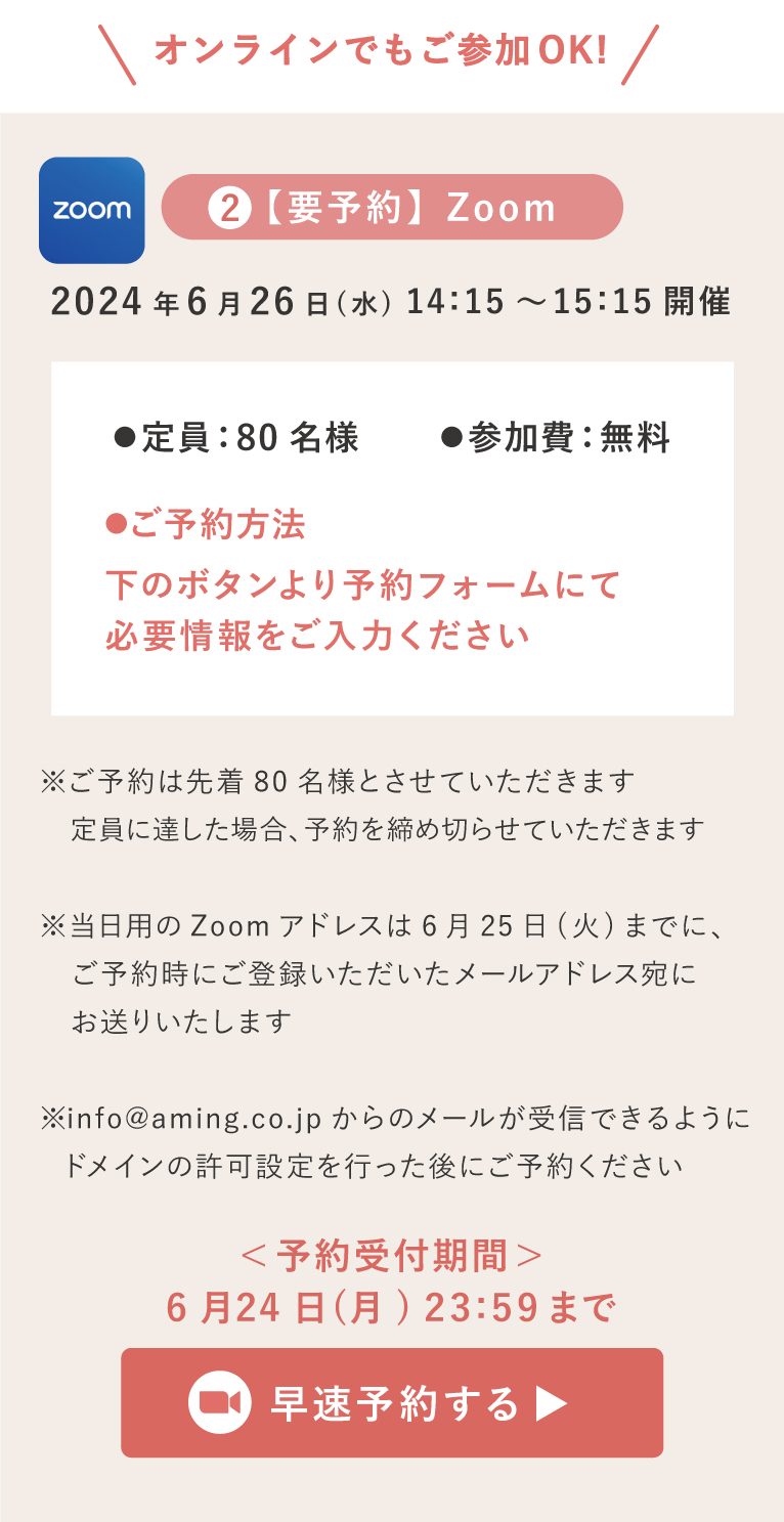 ・会場(アミングモンファヴォリ)・Zoom ライブ配信(要予約)・Instagramのライブ配信(自由視聴)