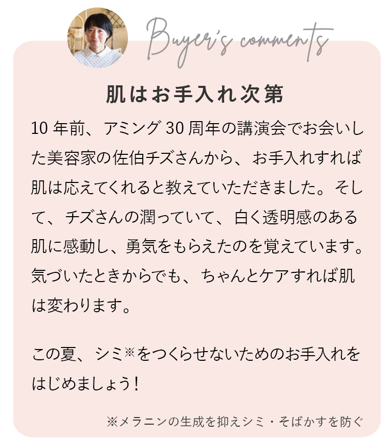 いつものスキンケアアイテムにこだわりのある方も多いと思いますので、日焼けが気になる季節だけでも美白(※)ケアアイテムを取り入れてみませんか。