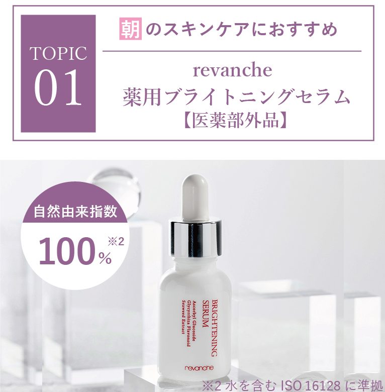 2024年の1月にリニューアルし、医薬部外品でありながら自然由来指数100%(※2)の『薬用ブライトニングセラム』としてパワーアップ。有効成分のビタミンC誘導体がシミ(※1)に働きかける美容液です。