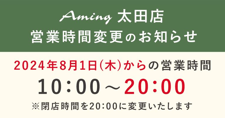 アミング太田店の営業時間につきまして、誠に勝手ではございますが2024年8月1日(木)より閉店時間を変更させていただきます。
