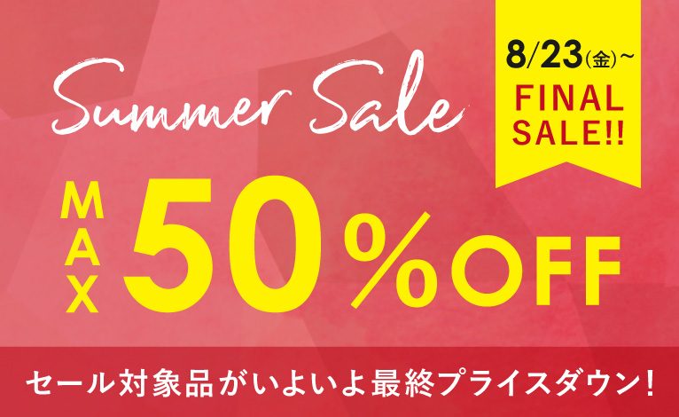 8/23(金)より、夏物セール対象品が【最大50%OFF】に最終プライスダウンいたします。