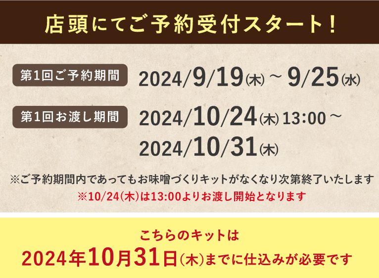 【2024年お味噌づくりキットご予約スケジュール予定】