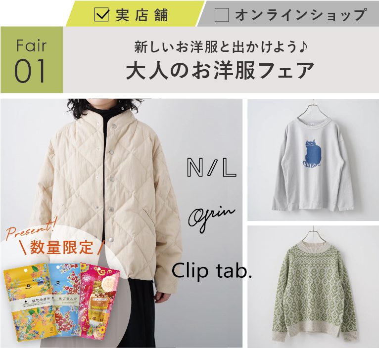 【注意事項】※セール品はフェア対象外です※品切れの際はご了承ください※プレゼントは数量限定です※プレゼントはお一人様1点です※プレゼントの種類はスタッフにお任せください※プレゼントは予告なく変更する場合がございます※オンラインショップでは開催しておりません