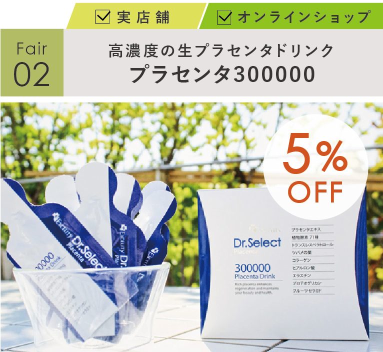 10月は「プラセンタ300000スマートパックが5%OFF!内側から潤いを届けるプラセンタドリンクを、キレイを目指したい方や、ここ一番というときの集中ケアに。