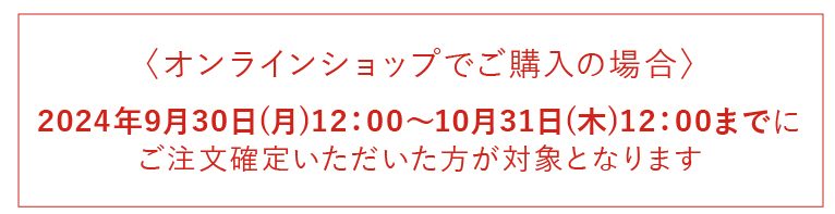 【オンラインショップ開催期間】2024年9月30日(月)12:00~10月31日(木)12:00までにご注文確定いただいた方が対象