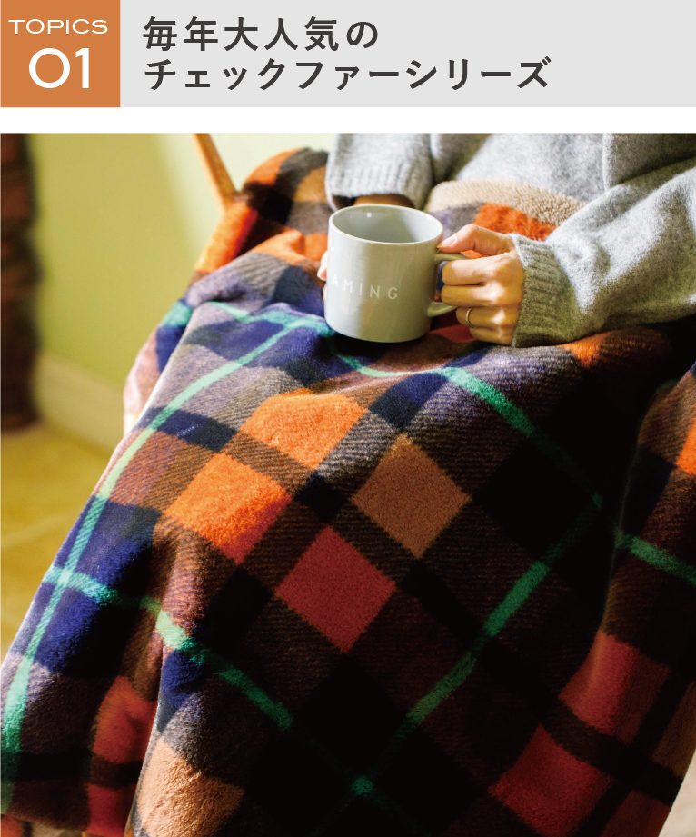 肌触りの良いフェイクファーブランケット。ボア裏地付きの2重仕様でしっかりとあたためてくれます。極細繊維のファーはとてもなめらかで、いつまでも触っていたいほど気持ちの良い触感が◎