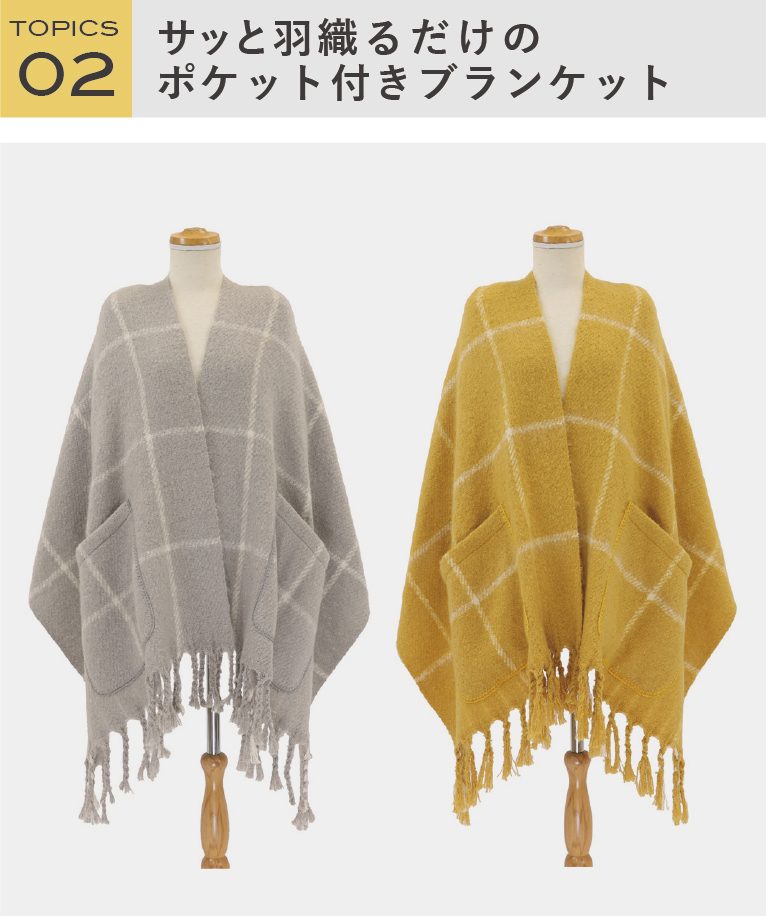 ちょっとしたお出かけなら、これ1枚をサッと羽織るだけで大丈夫♪ブランケット代わりにしてひざかけにもできます。家の中でも外でも1日中ずっと手放せない、これからの季節に大活躍するアイテムです。大切な方への贈り物にもおすすめ。