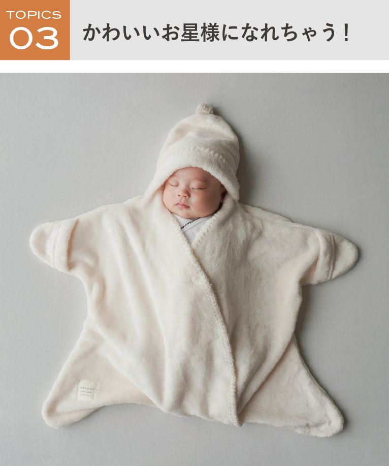 赤ちゃんをくるむとお星様のような姿に♪しっとりふわふわ&肌触り抜群のお星様型の「mocmof(モクモフ)お星様おくるみ」。足が分かれているので、着せたままベビーカーや抱っこ紐に乗せられて便利!