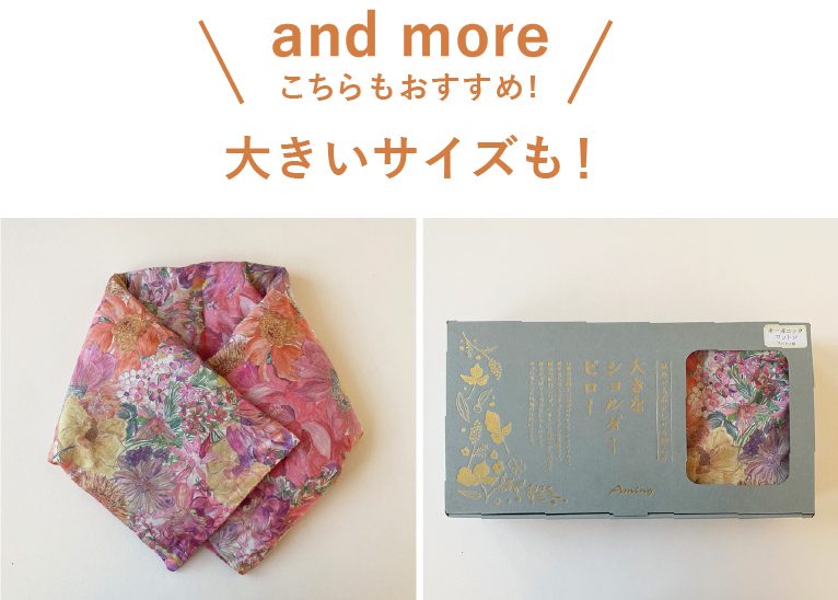 大きいサイズのショルダーピロー。大きめサイズなので首・肩・腰もすっぽりカバーしてあたためてくれます。