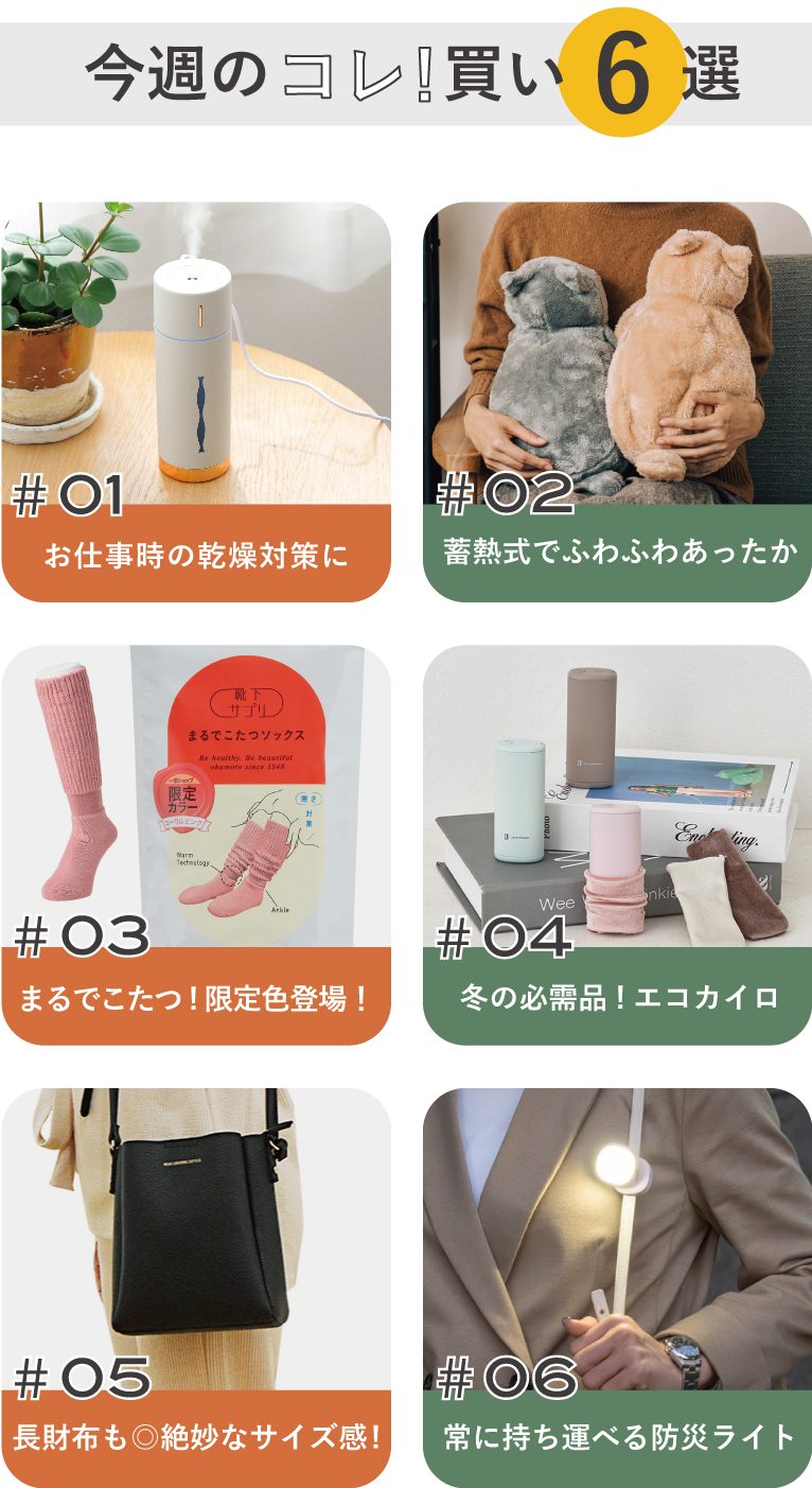 本日は寒さ対策にぴったりな、冬のあったかアイテムからお出かけバッグまで注目の6アイテムをご紹介♪
