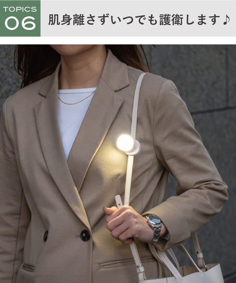 暗い夜道の「怖い」「不安」を解消する「充電式 護衛さんライト」。もしもの災害時に備えて毎日持ち歩くのがおすすめ。クリップタイプなので、どこでも挟めるところもうれしいポイント。小さくて軽いので夜のウォーキングやランニング時にも大活躍すること間違いなし!