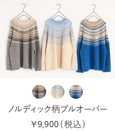 毎年人気のアイテム!アミングオリジナルのノルディック柄ニットプルオーバー。今年は3色のノルディック柄が登場。ストレッチ性のあるクセになるようなふわもちの触り心地です。混合素材なのでおうちで手洗いができ、扱いやすいのも魅力の一つです。見ているだけでも伝わってくるようなふんわり柔らかい素材で毎日着たくなる、リピーターの多いアイテムです!