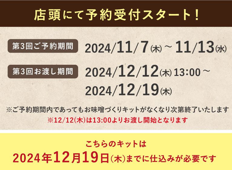 【2024年度お味噌づくりキットご予約スケジュール予定】