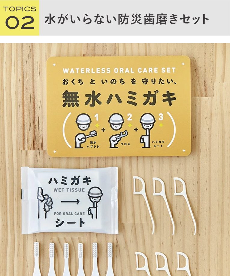 「おくち」と「いのち」を 守りたい、お口の防災「無水ハミガキセット」