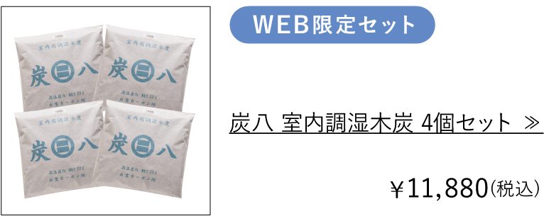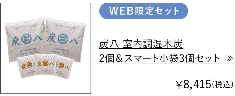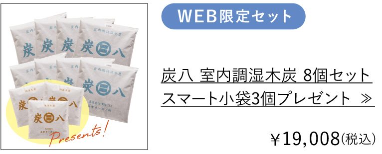 お部屋のジメジメに、嫌なニオイ対策に。暮らしの湿害を解決する「炭八」。期間限定でお得なセットを送料無料でお届けします♪