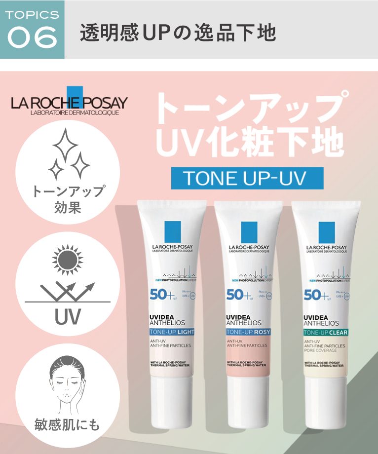 『LA ROCHE-POSAY(ラロッシュポゼ)』の人気シリーズ「UVイデアXLプロテクショントーンアップ」は、紫外線はもちろん、PM2.5を含む大気中微粒子などの外的要因から肌を保護してくれるので、これからの季節におすすめ。気になる肌悩みを自然にカバーし、ツヤのあるキレイな仕上がりに!敏感肌の方も心地良くお使いいただけます。