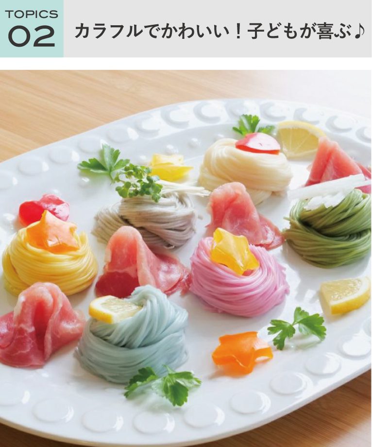 自然素材を使って色付け♪カラフルな7色の手延べそうめん