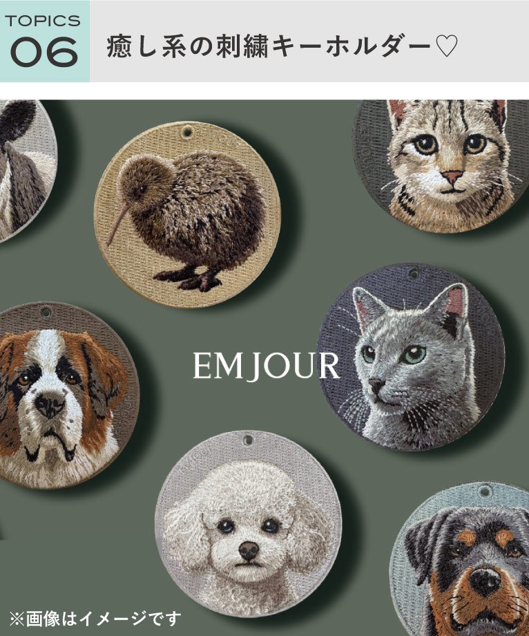 【商品情報】・EMJOUR 刺繍キーホルダー 各¥2,200(税込)