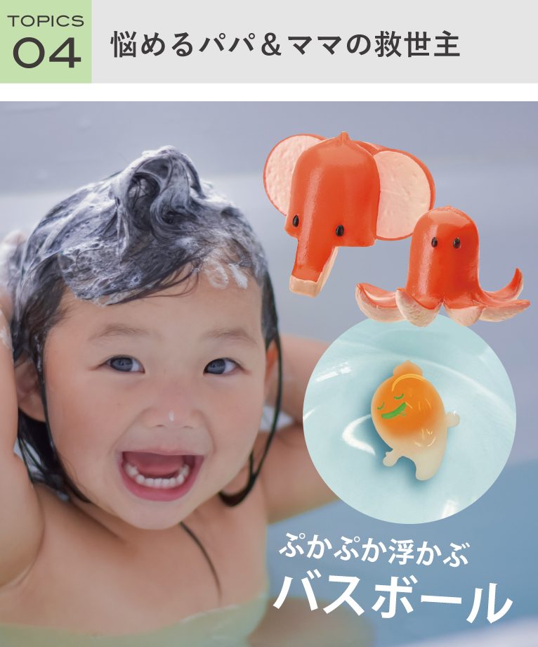 お風呂が嫌いなお子様もこれがあれば大満足!中からおもちゃがでてくるバスボール。