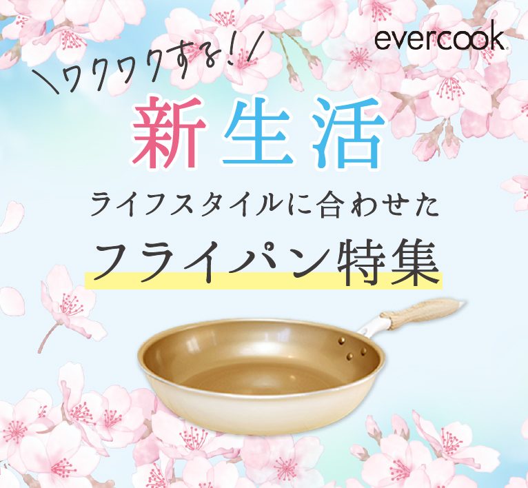 evercookのフライパンは、こびりつきにくさが長持ちし、洗いあがりの良さもうれしいポイント!一度使うとまた使いたくなるという方が多いです!