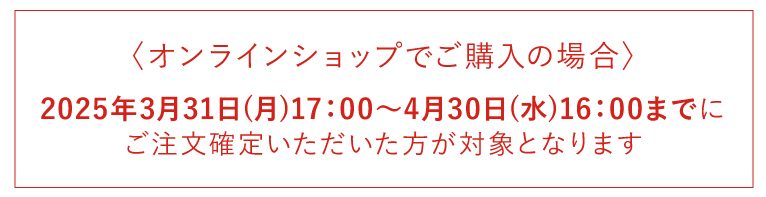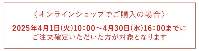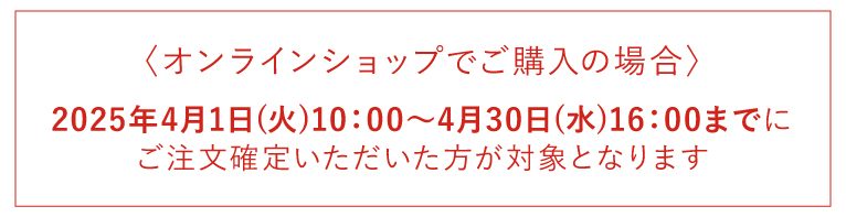 2025年4月1日(火)10:00~4月30日(水)16:00までにご注文確定いただいた方が対象