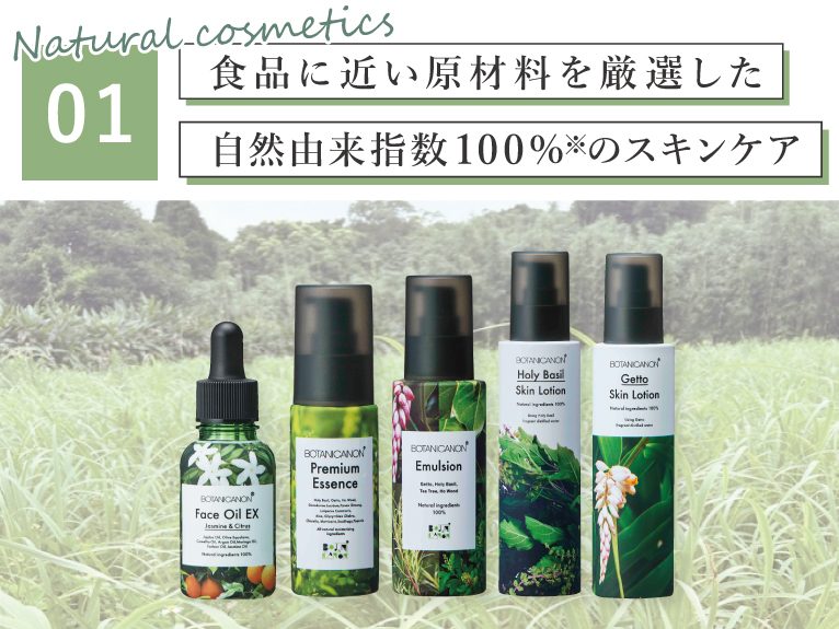 01 食品に近い原材料を厳選した自然由来指数100%(※)のスキンケア