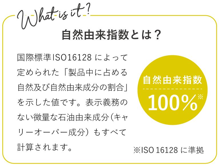 ※ISO 16128に準拠(石けんに使用する苛性ソーダ、苛性カリを除く)