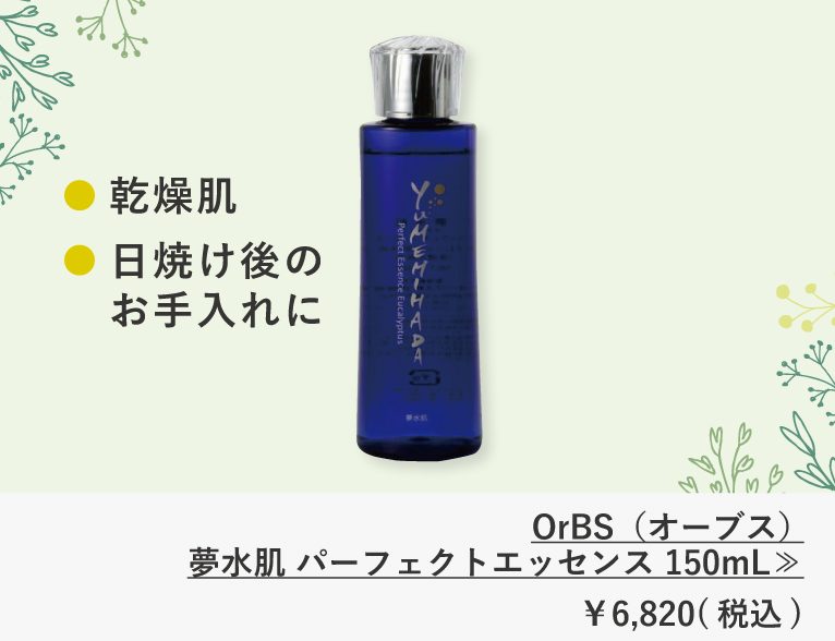 『オーブス』のスキンケアアイテムは、防腐剤などの添加物を一切使用していないので、ゆらぐ季節の強い味方です。日焼け後のお手入れにもおすすめで、これからの季節に1本持っておきたいアイテムです。