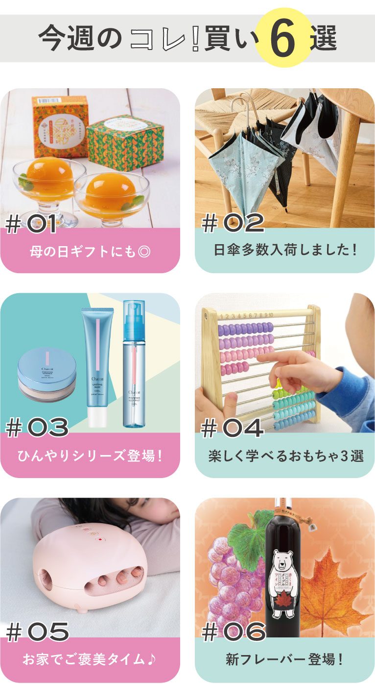 今回は、母の日の贈り物にもおすすめのUV対策の日傘や果実感たっぷりのみかんスイーツなどをご紹介!