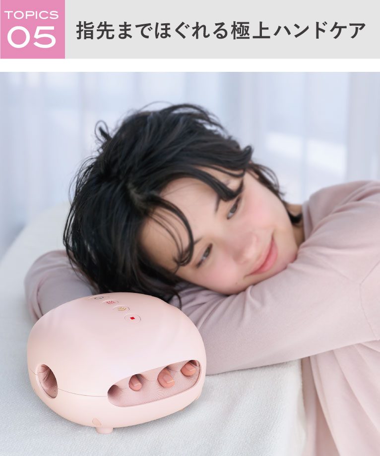 5本指を同時に加圧できるグローブ型ハンドマッサージ。「温熱×加圧×モード」の3種搭載で機能も充実◎コードレス&コンパクトタイプなので、いつでもどこでもお気に入りの場所で使えます。