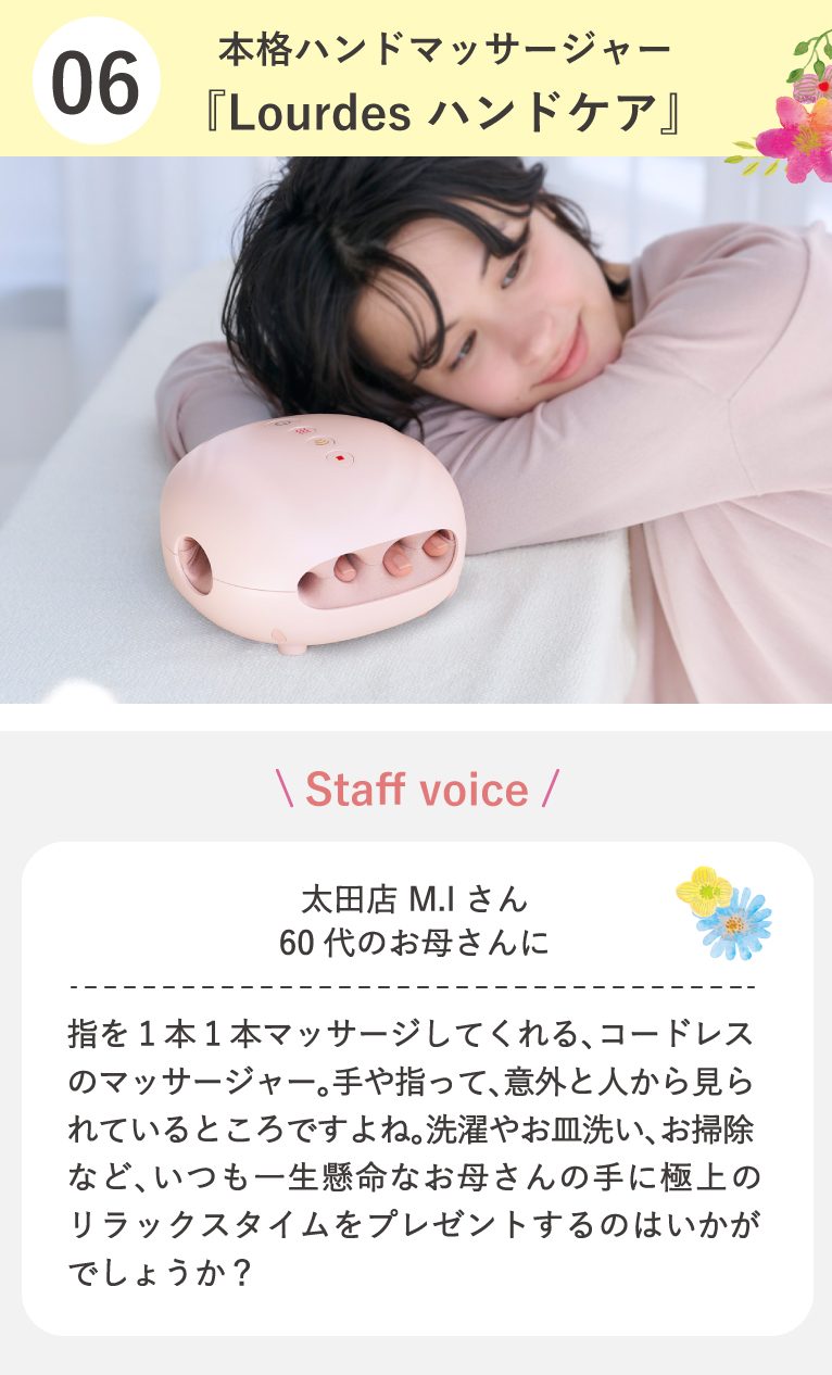 スタッフが50代・60代のお母さんへ贈る、贈り物のリアルなエピソードが集まりました。