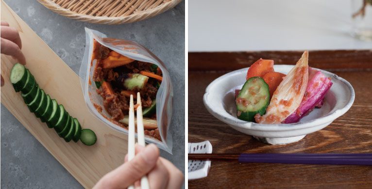 味が薄くなったら追加で梅床を足せば冷蔵庫で約3ヶ月使えます!夏バテが気になってくる今の季節におすすめのサッパリとした梅味で、美味しく簡単に野菜と梅の栄養を摂りましょう♪