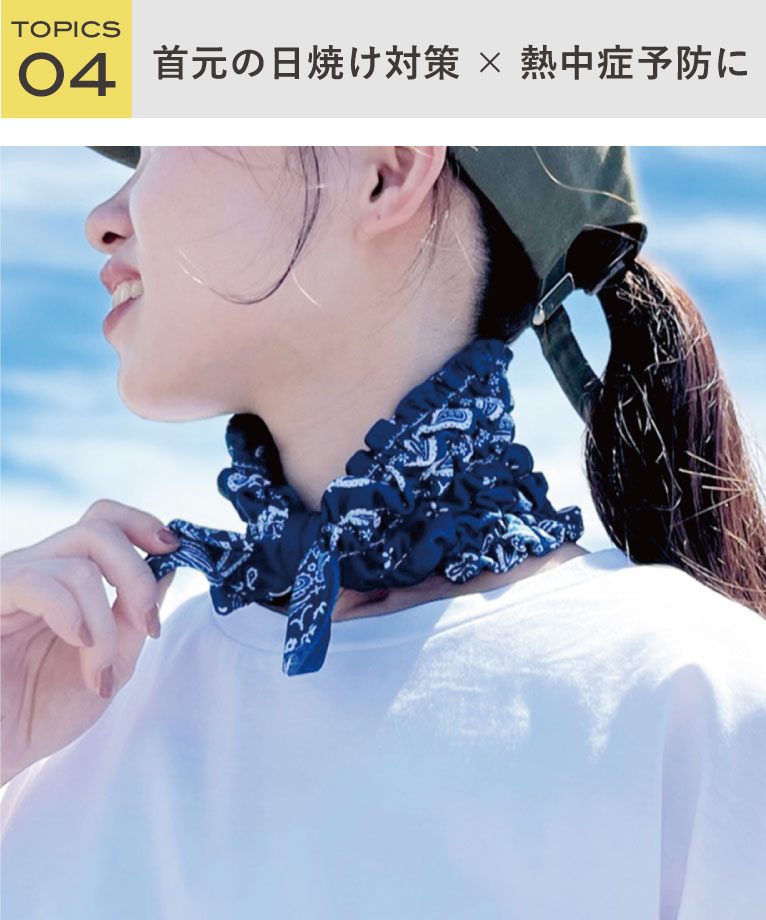 はじめからループ状になっているネッククーラー。スポーツなどの激しい動きやお子様が使っても外れる心配がなく便利♪クールリングと併用すれば、相乗効果でさらに首元のひんやり感アップ!リングだけだと気になる首元の日焼け対策にも◎