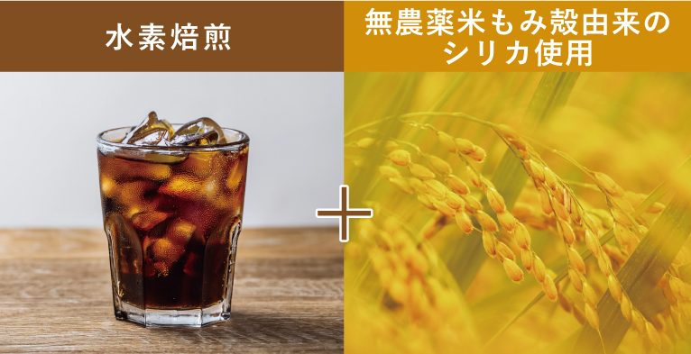 使用しているのは、無農薬栽培米のもみ殻から抽出した植物性シリカ。もみ殻には、シリカが約20%、ミネラル(マグネシウムやカルシウムなど)が約20%、そして残りの約60%には豊富な食物繊維が含まれています。つまりこの一杯で、シリカとともに、自然のミネラルや食物繊維まで摂ることができます。