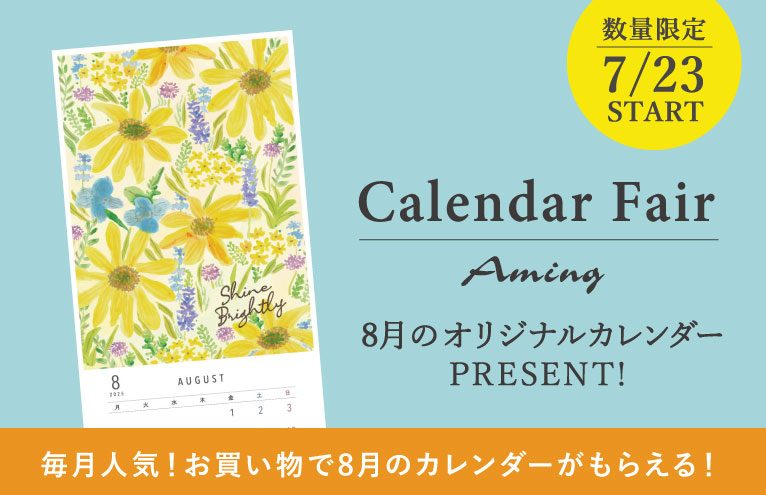 アミングでお買い物をしていただいた方に先着で「8月のオリジナルカレンダー」をプレゼント!