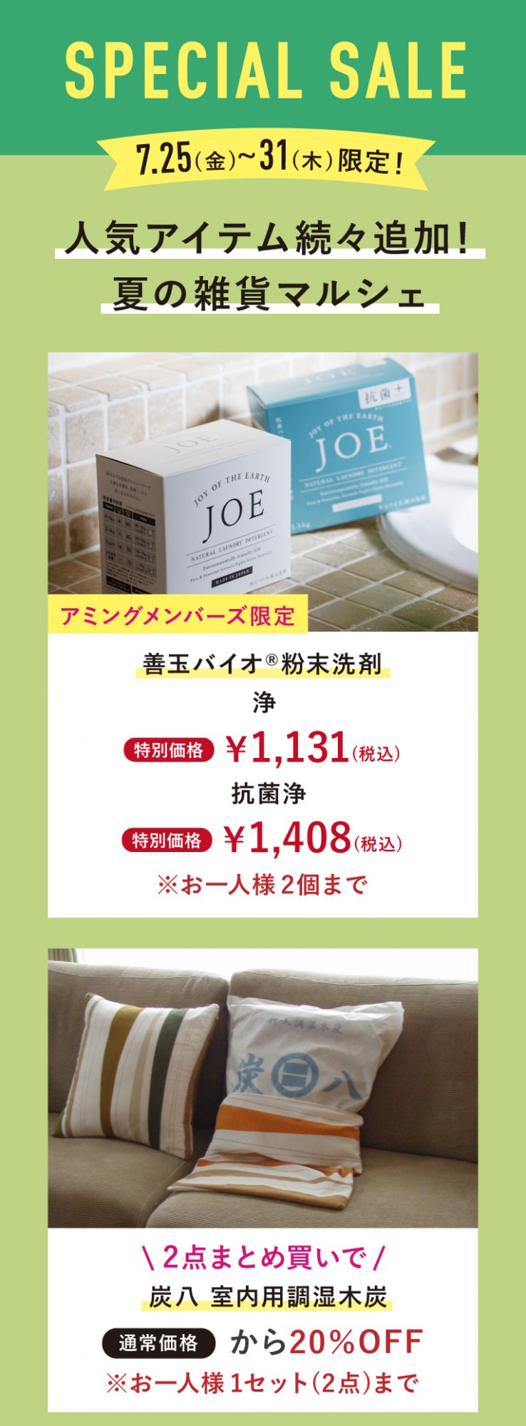 7/25(金)からは、当店でロングセラーの「炭八」と「洗濯用洗剤JOE」もセールに仲間入り!