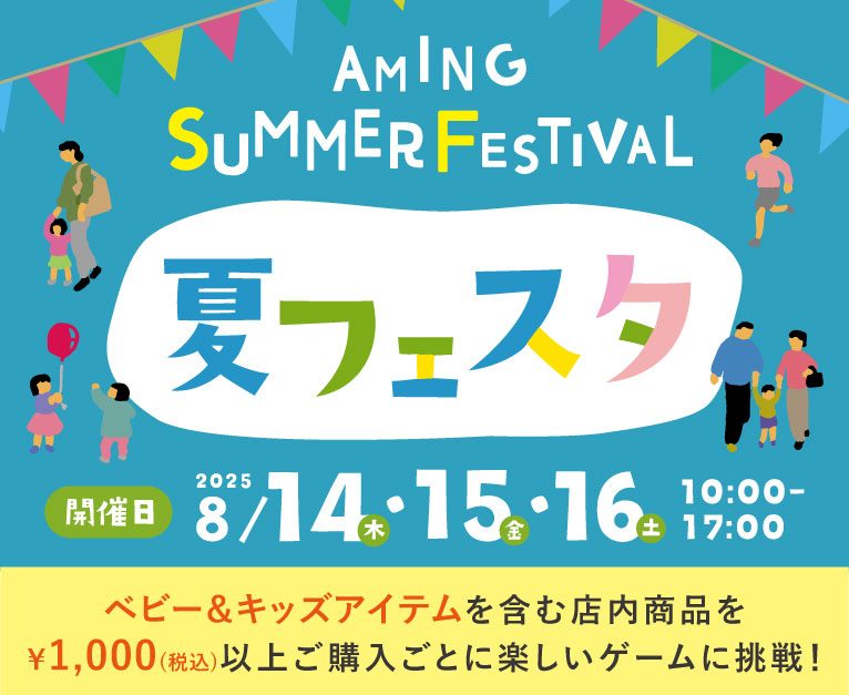 ワクワクの夏休み!8/14(木)・15(金)・16(土)の3日間は、アミング各店で夏フェスタを開催♪