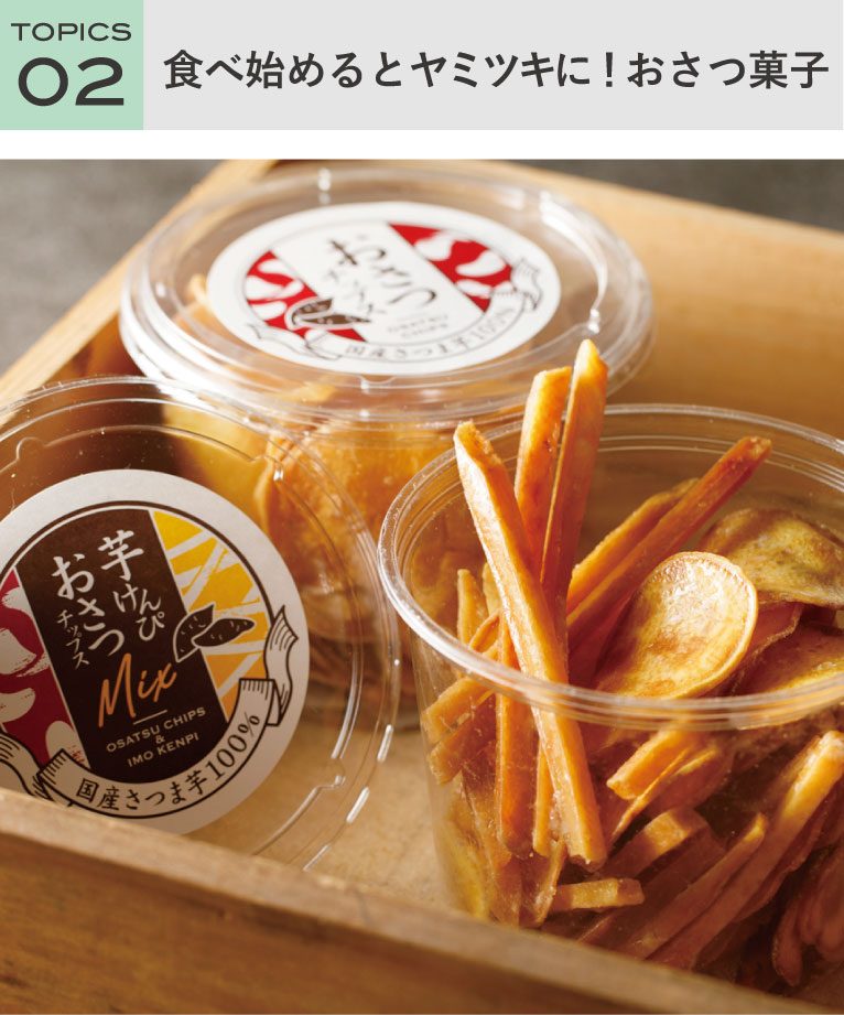皮の色が美しい黄金色で、優しい甘さが魅力の九州産「黄金千貫(こがねせんがん)」を贅沢に使った、パリパリ食感がクセになる「おさつチップス」と、さつまいもの風味を生かした「おさつチップスMix」が入荷♪