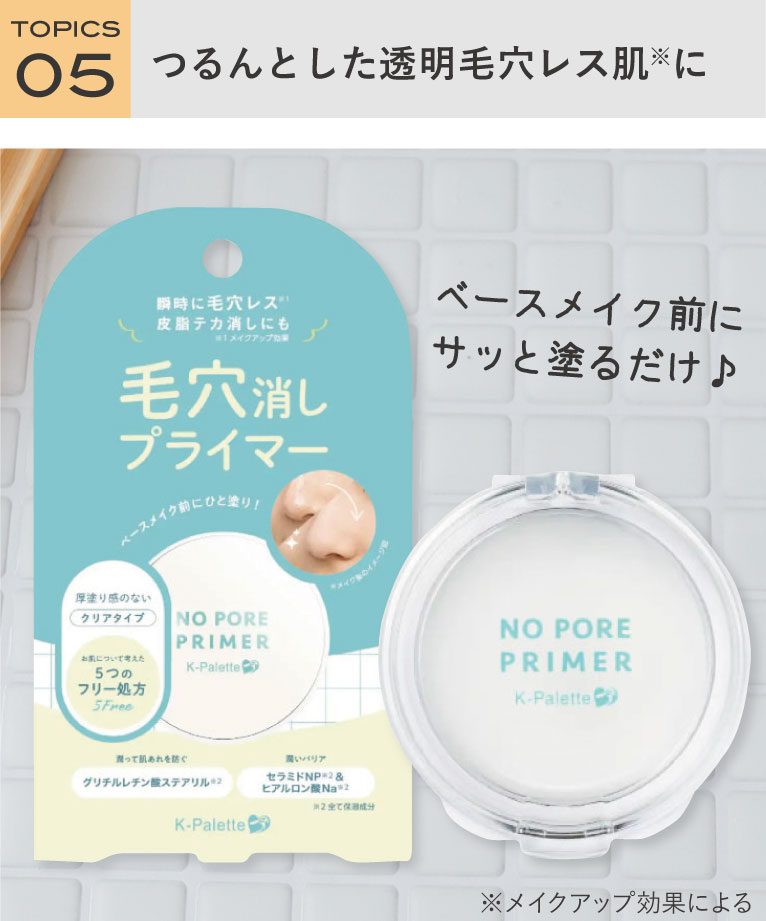 メイク前のひと手間で、仕上がりに差がつく!毛穴やテカリを“なかったこと(※)”にしてくれる優秀プライマーが、新登場!「毛穴消しプライマー」は、軽いテクスチャーで肌にぴたっと密着し、毛穴を自然にカバー♪