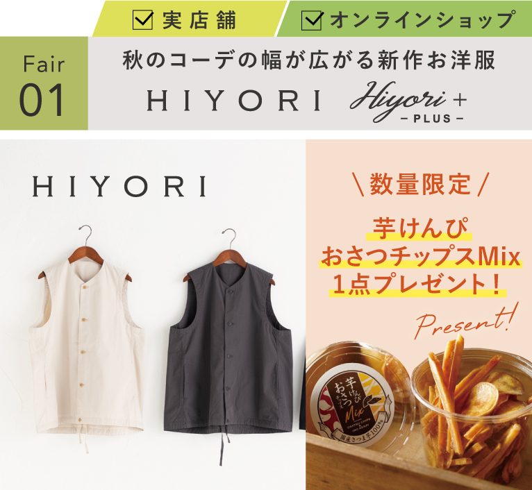 9月は対象ブランドのお洋服を¥15,000(税込)以上ご購入の方に、国産さつまいもの甘みと風味をぎゅっと凝縮した「芋けんぴ おさつチップスMix」を1点プレゼント!カリッと食感が止まらない素朴で懐かしい味わいです♪