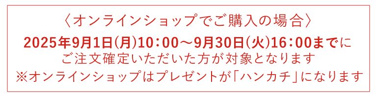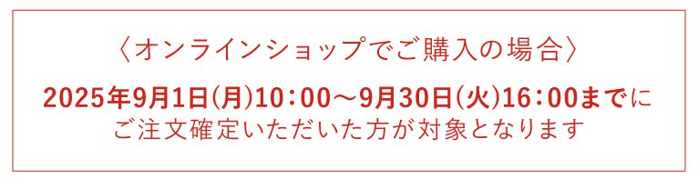 2025年9月1日(月)10:00~9月30日(火)16:00までにご注文確定いただいた方が対象