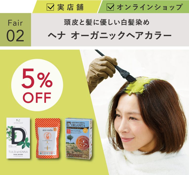 薬品を使わず植物成分のみで染める「ヘナ オーガニックヘアカラー」は、農薬や化学肥料を使わず栽培された高品質のヘナを使用。