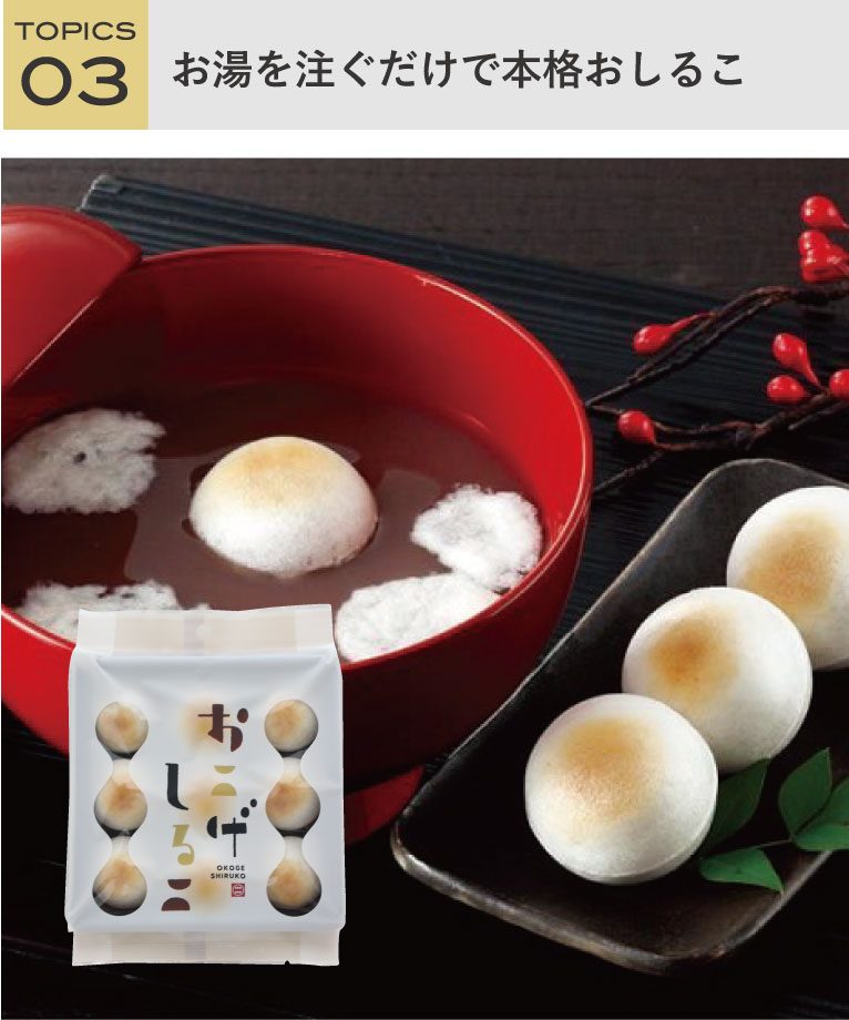 かわいらしいお団子形の皮の中には、小豆晒し餡・和三盆糖・くず粉を合わせた乾燥餡が詰められています。熱湯を注ぐと、香ばしく焦げ目を付けた皮の香りがふわりと広がります。