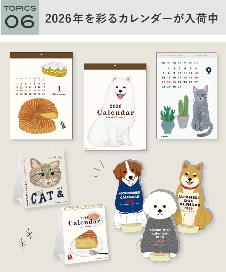2026年の予定を楽しく管理できるカレンダーが入荷しました!人気イラストレーターの「米津祐介」さんの壁掛けタイプやほっこり可愛い「そで山かほ子」さんの卓上タイプなど。お気に入りをぜひ店頭でチェックしてみてください♪