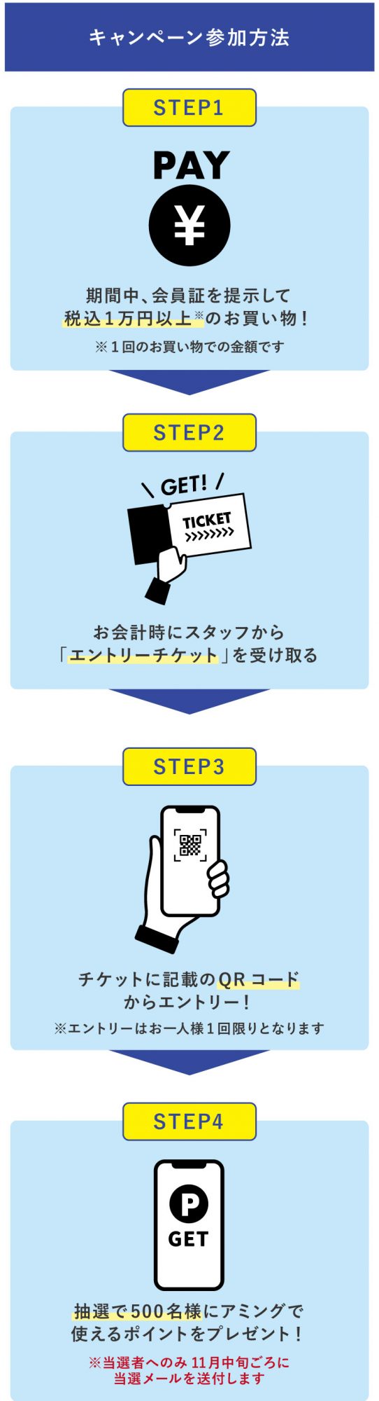期間中、実店舗で1回のお会計につき、税込1万円以上のお買い物をされた方に、レジでエントリーチケットをお渡しします。