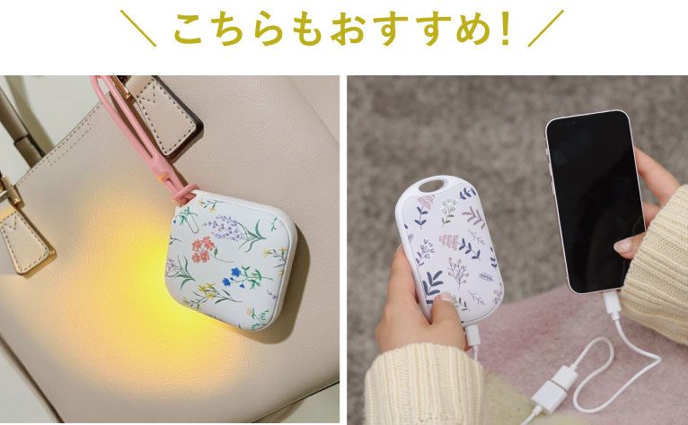 バッグにつけて持ち運べるタイプやバッテリーチャージャーとしても使える2WAY充電式カイロまで♪