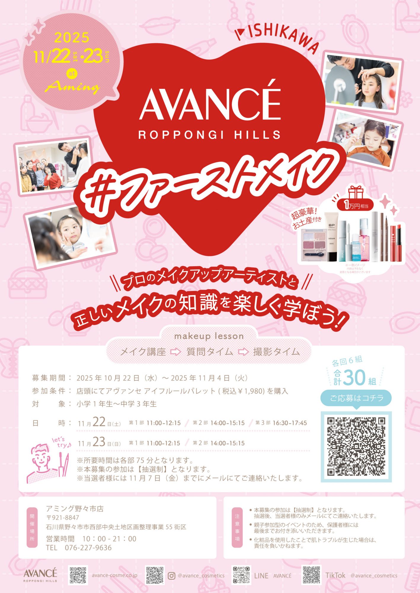 コスメブランド『AVANCE』が主催する大好評のイベント「ファーストメイク」がアミングでも開催決定!!