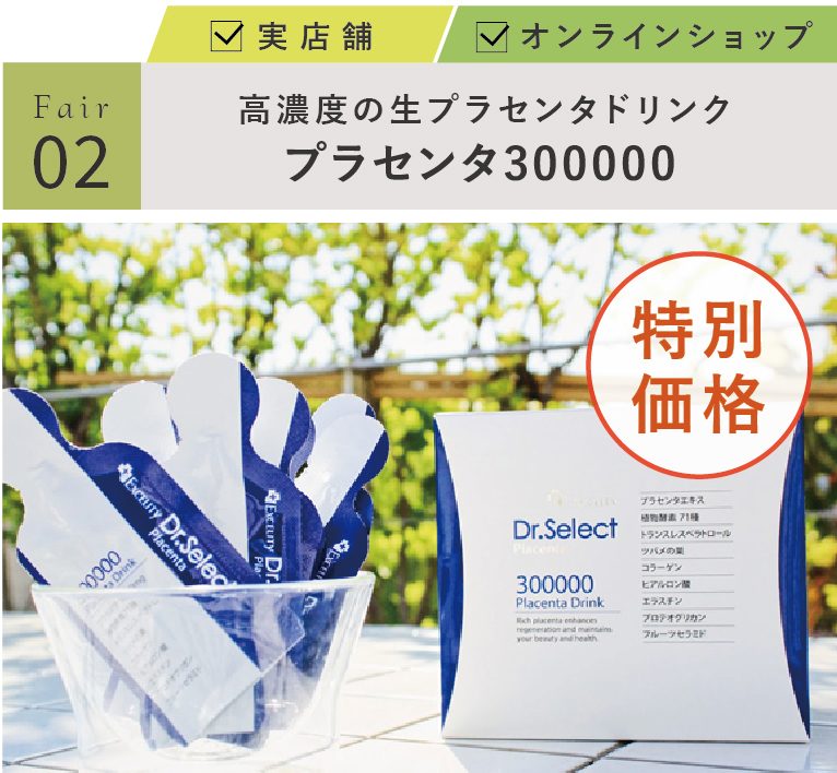 【対象商品】Dr.Select(ドクターセレクト)プラセンタ300000スマートパック・7包入 特別価格 ¥3,078(税込)・30包入 特別価格 ¥12,312(税込)
