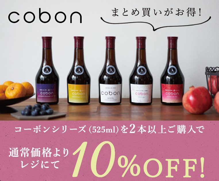 コーボンは国産フルーツなどを使った、伊豆で手づくりされている天然酵母飲料です。