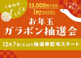 【実店舗限定】12/7(土)よりガラポン抽選券配布スタート!抽選で豪華景品が当たるチャンス!
